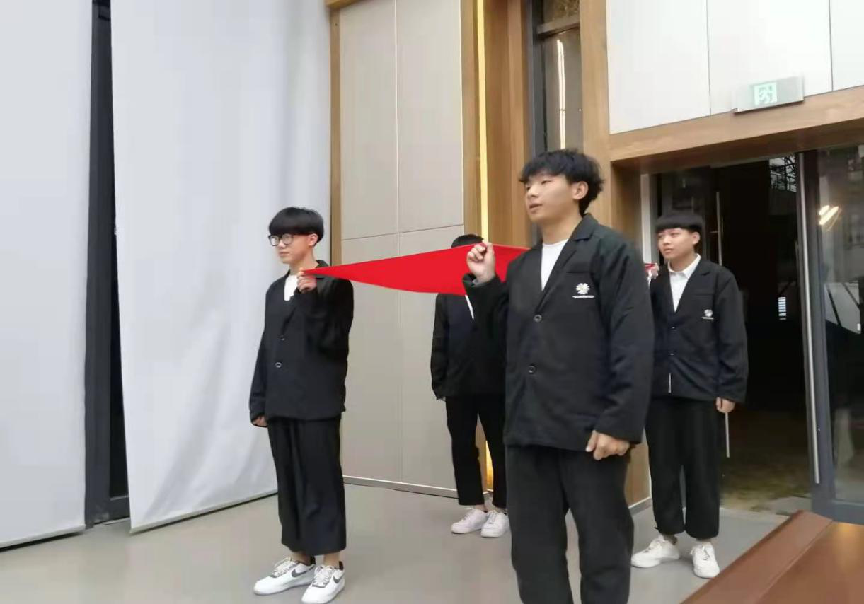 仪式第二项议程——全体起立,出团旗,奏团歌。