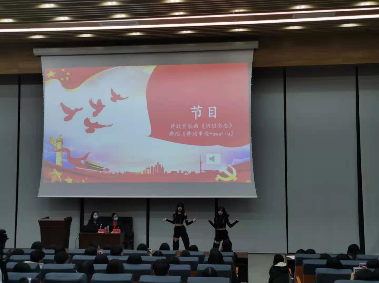 我校多才多艺的四位同学为新团员带来歌曲和舞蹈串烧。