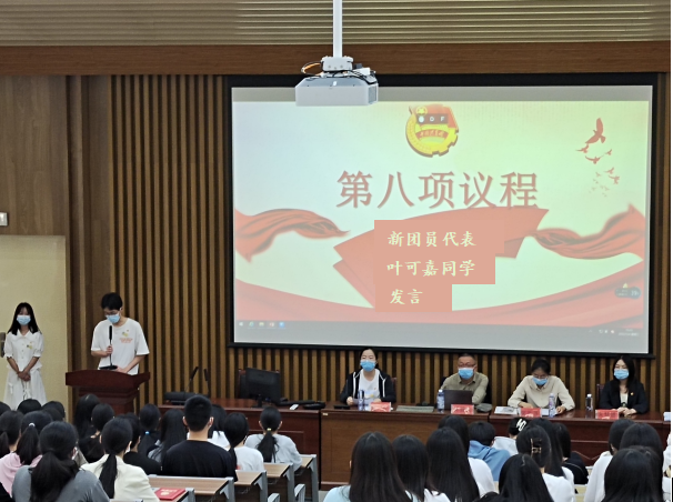 校团委副书记吴秀源向全体团员表达了殷切的关怀和美好的期待,希望大家团结在共青团这个先进青年的群团组织周围,努力提高自身文化素养的同时更要坚定理想信念,从历史中汲取养分,在实践中收获成长。